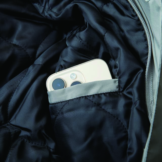 内ポケットや胸の止水ファスナーポケットで収納力も確保。