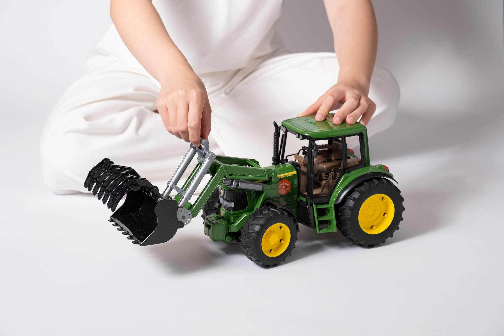 ローダーは上下可動し、土や飼料の積み込み作業をリアルに再現可能。