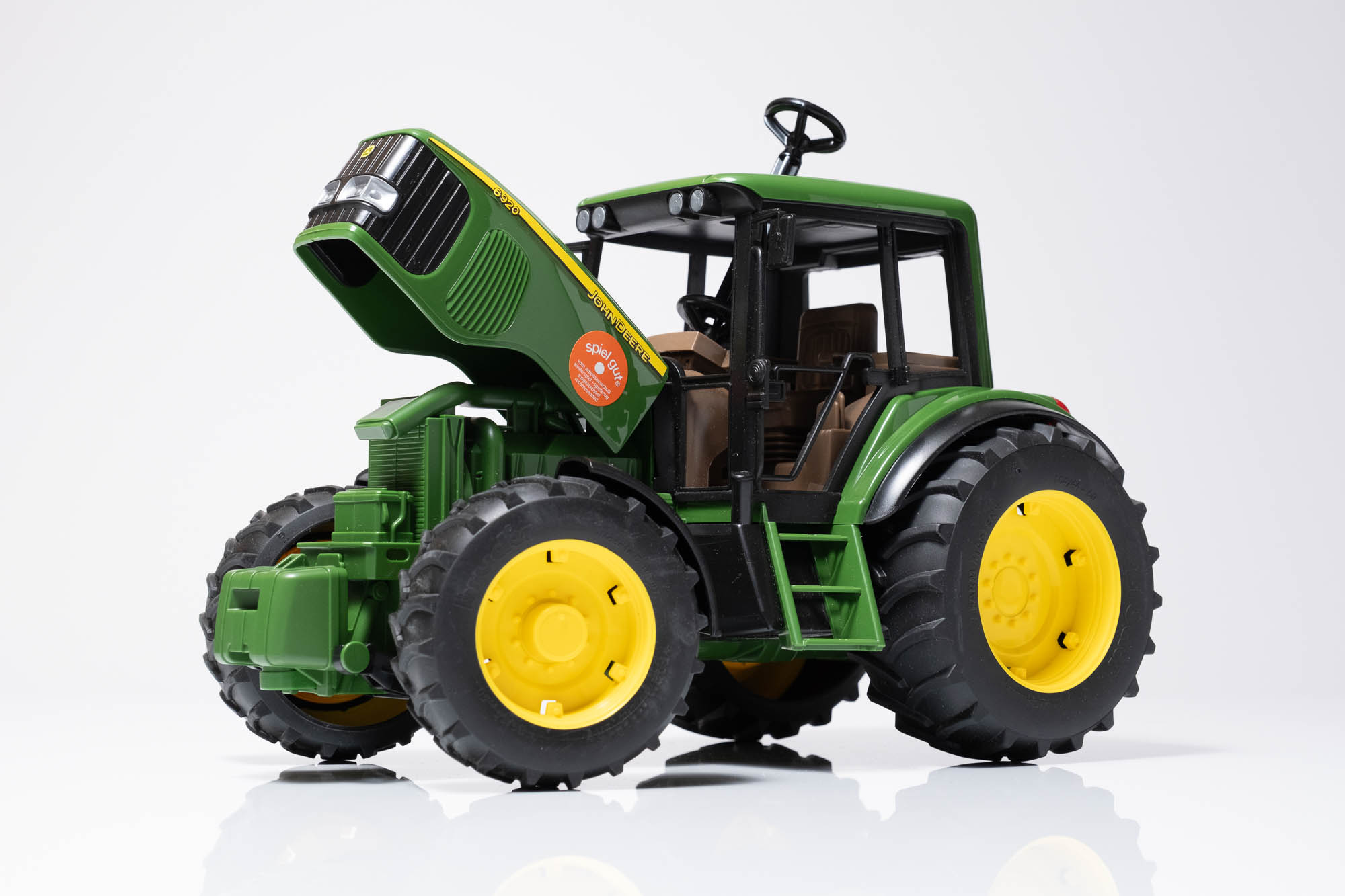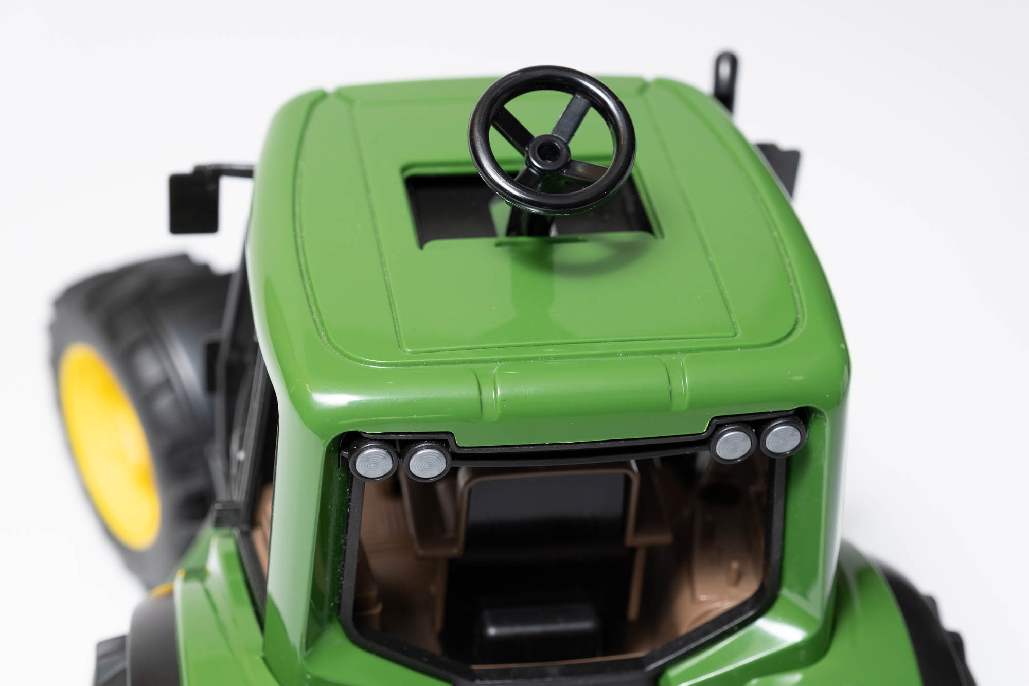 ボンネットの開閉や操舵機能も備え、実機に近い操作性を体感できる。農業だけでなく建設現場のシーンにも対応できる汎用性の高い一台。