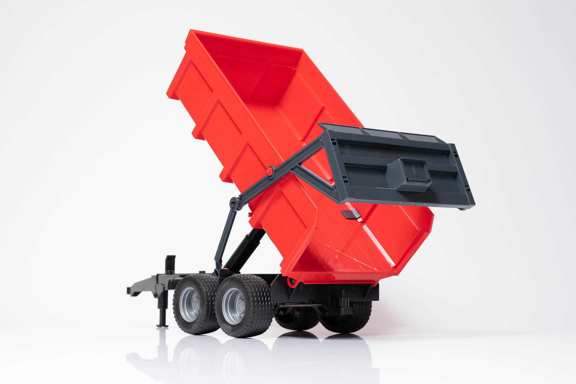 鮮やかな赤のダンプ式トレーラーを再現した1/16スケールモデル。