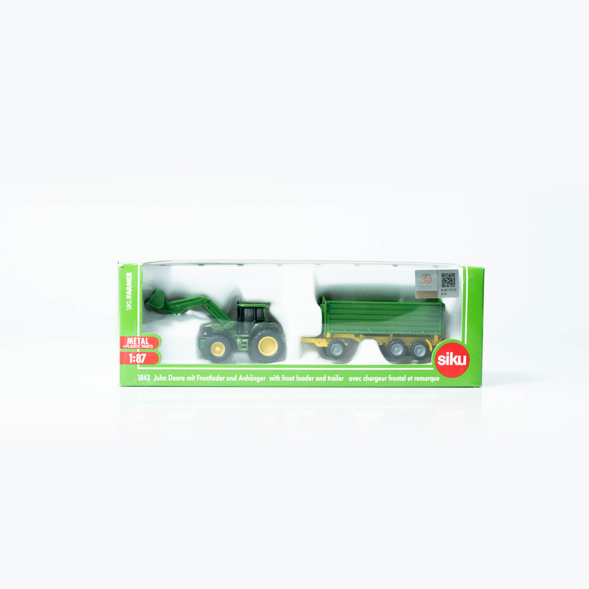 John Deere フロントローダー付きトラクター トレーラー付き 1/87