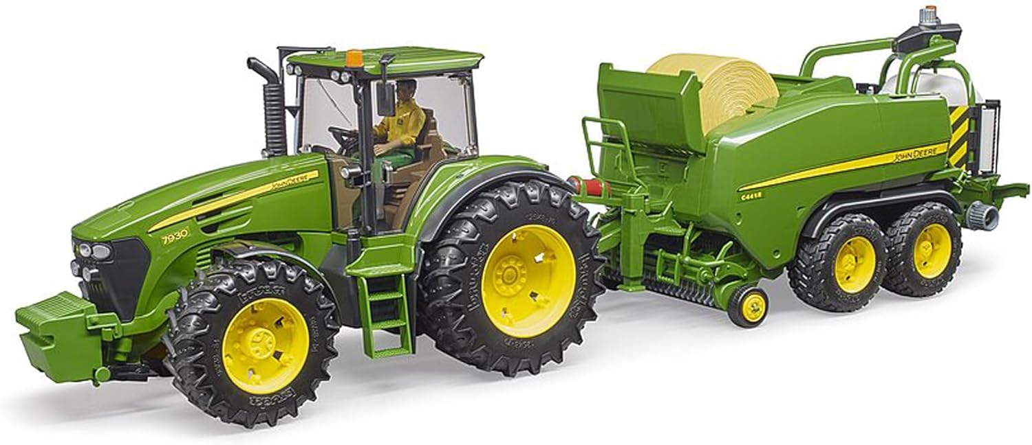 ベールの成形からラッピングまでを一体化した先進的農機を再現。