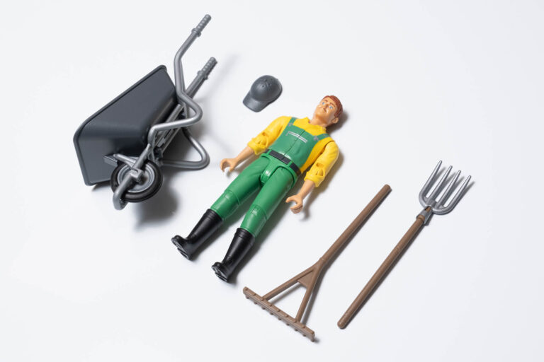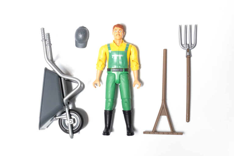 可動式の手足により様々なポーズが可能で、トラクターや農機との組み合わせで臨場感が向上する。