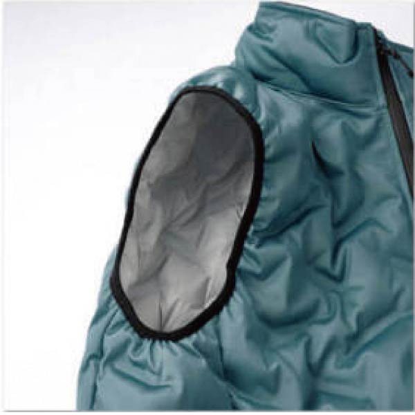 | 素材 | サイズ:M-3L カラー:ブラック 特徴: ・袖口ストレッチバインダーテープ ・衿裏フリース 素材: 表地:ポリエステル100%(ストレッチニット)(裏TPUラミネート) 裏地:ポリエステル100%(TPUラミネート+グラフェンプリント) 中綿:ポリエステル100% |
