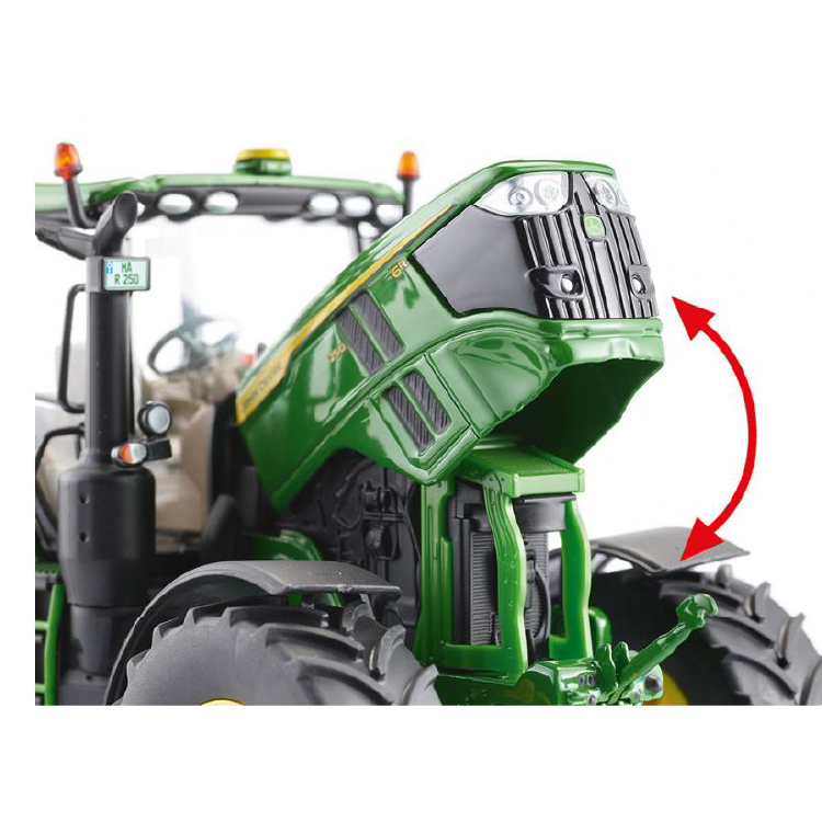 ステアリング連動の前輪可動、上下リンクの可動・伸縮、回転式シートなど多彩なギミックを備え、実機さながらの操作感とコレクション性を兼ね備える。
